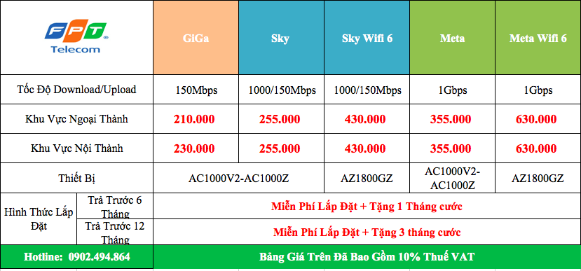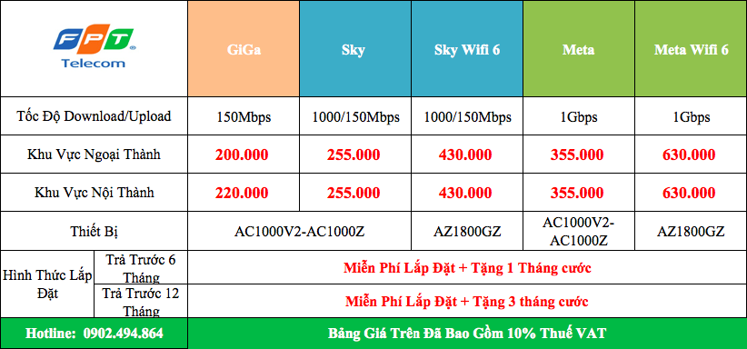 Lưu ý: Chính sách khuyến mại và giá cước dịch vụ internet FPT có thể thay đổi theo từng thời điểm, quý khách hàng cần thông tin chính xác nhất vui lòng liên hệ hotline: 0902.494.864 để được hỗ trợ 24/7.