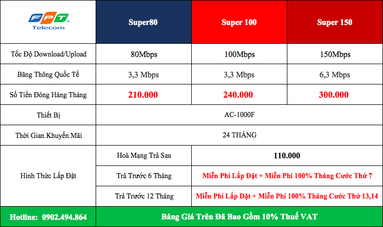 Lưu ý: Chính sách khuyến mại và giá cước dịch vụ internet FPT có thể thay đổi theo từng thời điểm, quý khách hàng cần thông tin chính xác nhất vui lòng liên hệ hotline: 0902.494.864 để được hỗ trợ 24/7