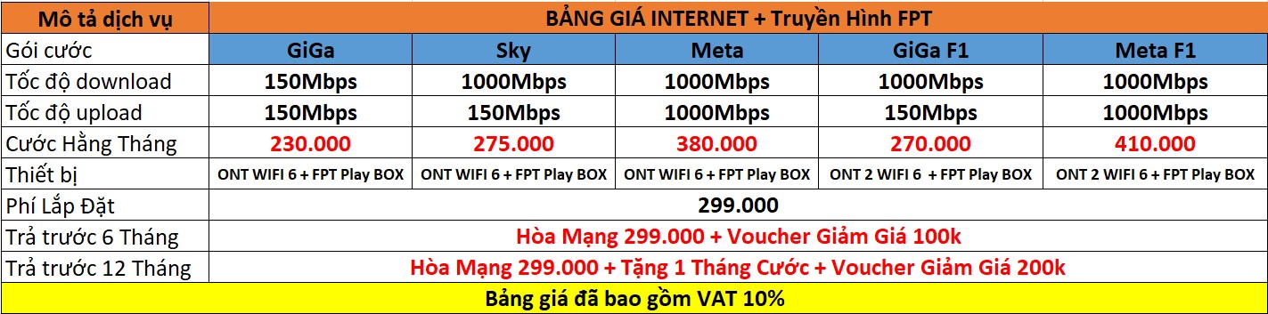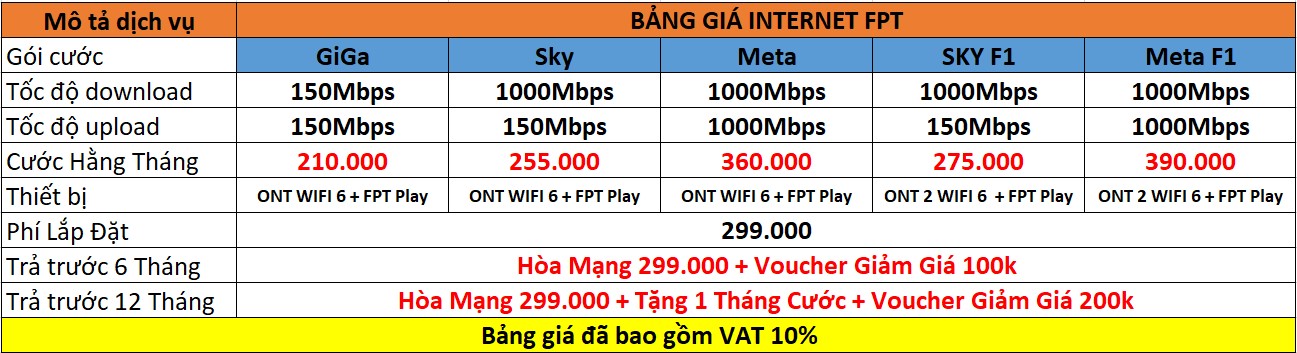 - 1.6 3. Bảng giá internet Wifi 5G , Wifi 6 cho doanh nghiệp của FPT Telecom: